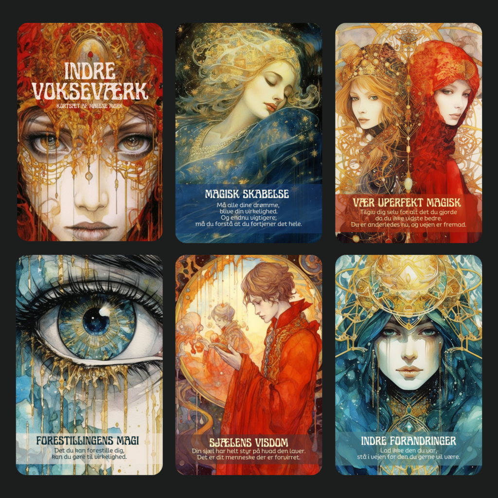 Kortsættet INDRE VOKSEVÆRK, er skabt som en mellemting mellem orakelkort, der bringer vejledende budskaber, og inspirationskort, der giver et puf i ryggen.
