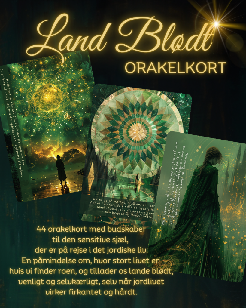 Julegaven er mit spritnye orakelkortsæt, der pt. er under udarbejdelse (i skrivende stund, er der kun landet fragmenter af det, men titlen bliver Land Blødt – og det handler om at rejse som en sensitiv sjæl i et jordisk liv) – der trykkes kun 100 sæt af disse kort, så de bliver pænt unikke.